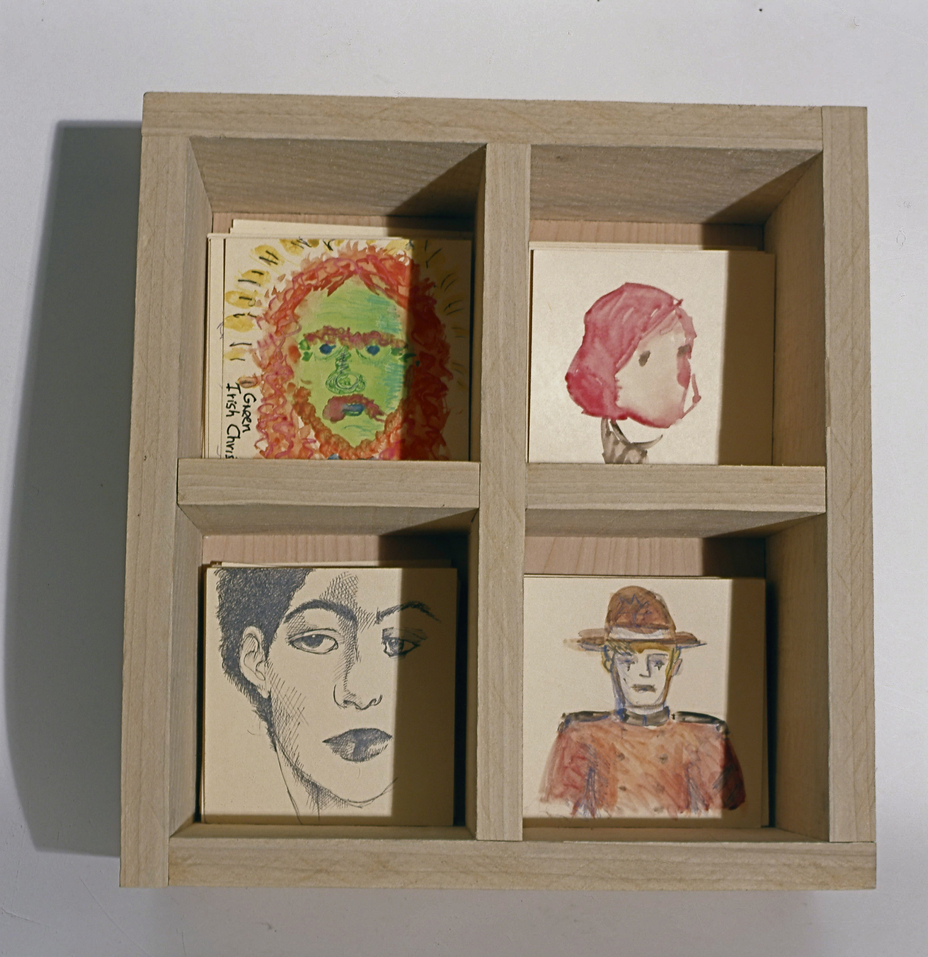 MaryBeth Edelson, Story Gathering Box: Race Cards, Nicole Klagsbrun Gallery, organized by Momenta NY, 1994. Each participant is asked to make a card depicting a race other than their own. Image courtesy of the artist.