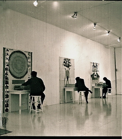 Edelson started making the story–gathering–boxes in 1972, at the same time as her early body art and public performances. The impetus behind making them derived from frustrations she had with the way art was being presented in gallery exhibitions. In her own words the story-gathering-boxes were in part her “… rebellion against the implied message of art galleries that you are to look but not touch; you are welcome to breeze through the exhibit but not linger; you are to stand but not to sit; and that the exhibiting artist is a know-it-all and you are a know-nothing.”