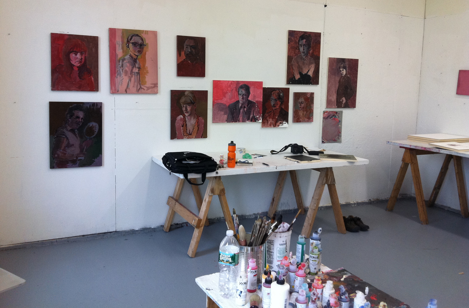 Ultimately, this project attempts to reconcile the three bodies of work (portraits, travel experience and institutional responses) so that they can coexist. During the final two weeks of the residency I began to hang the work on one wall. Combining the imagery as a way to construct large interconnected pieces that allowed for multiple readings. Time and distance away from the work after the residency enabled me to reevaluate some of these arrangements prior to the exhibition in March. After returning to my permanent studio space I was able to reconsider the work in a new way. In addition, the four-day drive to San Francisco, and the subsequent drive back, offered additional time to consider new work. Finally, what transpired as a result of this project is the expansion of my practice as a whole, understanding the possibilities for production outside the ‘safety’ of my home base. The residual imprint of the space now stays with the work that I produce and it is better for it.