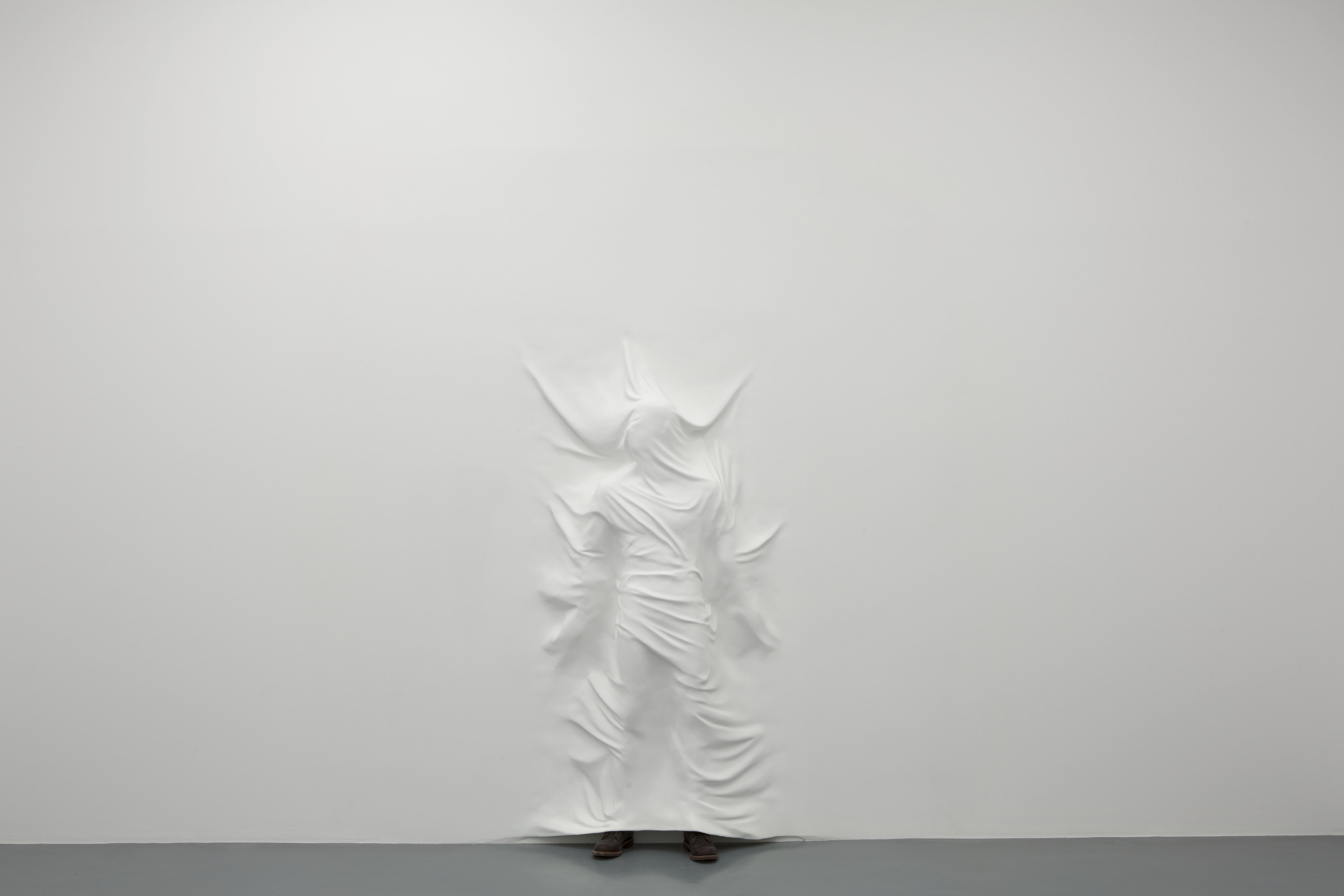 View of the exhibition Daniel Arsham STORM, Galerie Perrotin, Paris, 3 November – 22 December 2012. Hiding Figure, 2012, Fiberglass,paint, joint compound, mannequin, fabric and shoe, 7.0 feet x 48 inches x 14 1/4 in. Photo by Guillaume Ziccarelli. Courtesy Galerie Perrotin, Hong Kong & Paris