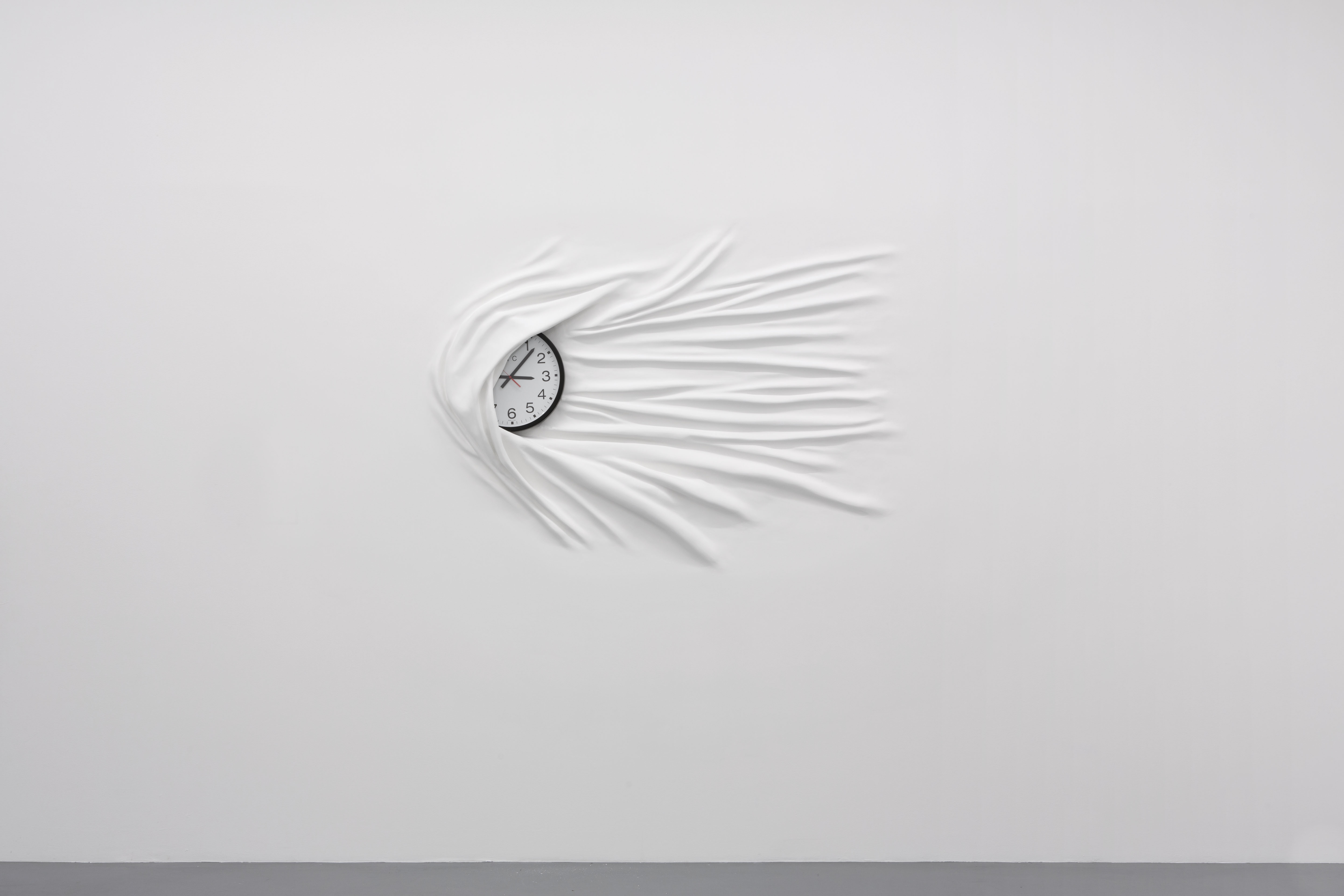 View of the exhibition Daniel Arsham STORM, Galerie Perrotin, Paris, 3 November – 22 December 2012. Sideways Clock, 2012, Clock, fiberglass, paint, joint compound, 54 inches x 6.5 feet x 5 1/2 in. Photo by Guillaume Ziccarelli. Courtesy Galerie Perrotin, Hong Kong & Paris