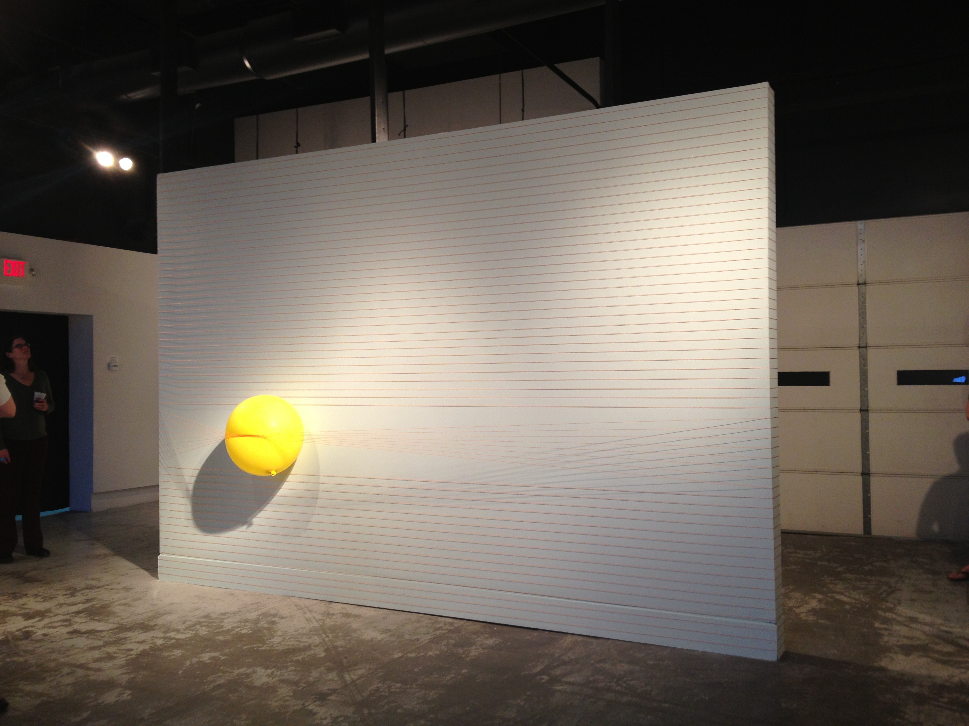 Cory Imig, Progressive Collapse, 2013, string and balloon. Installation view. La Esquina, Kansas City, MO. Image courtesy of Erin Dziedzic