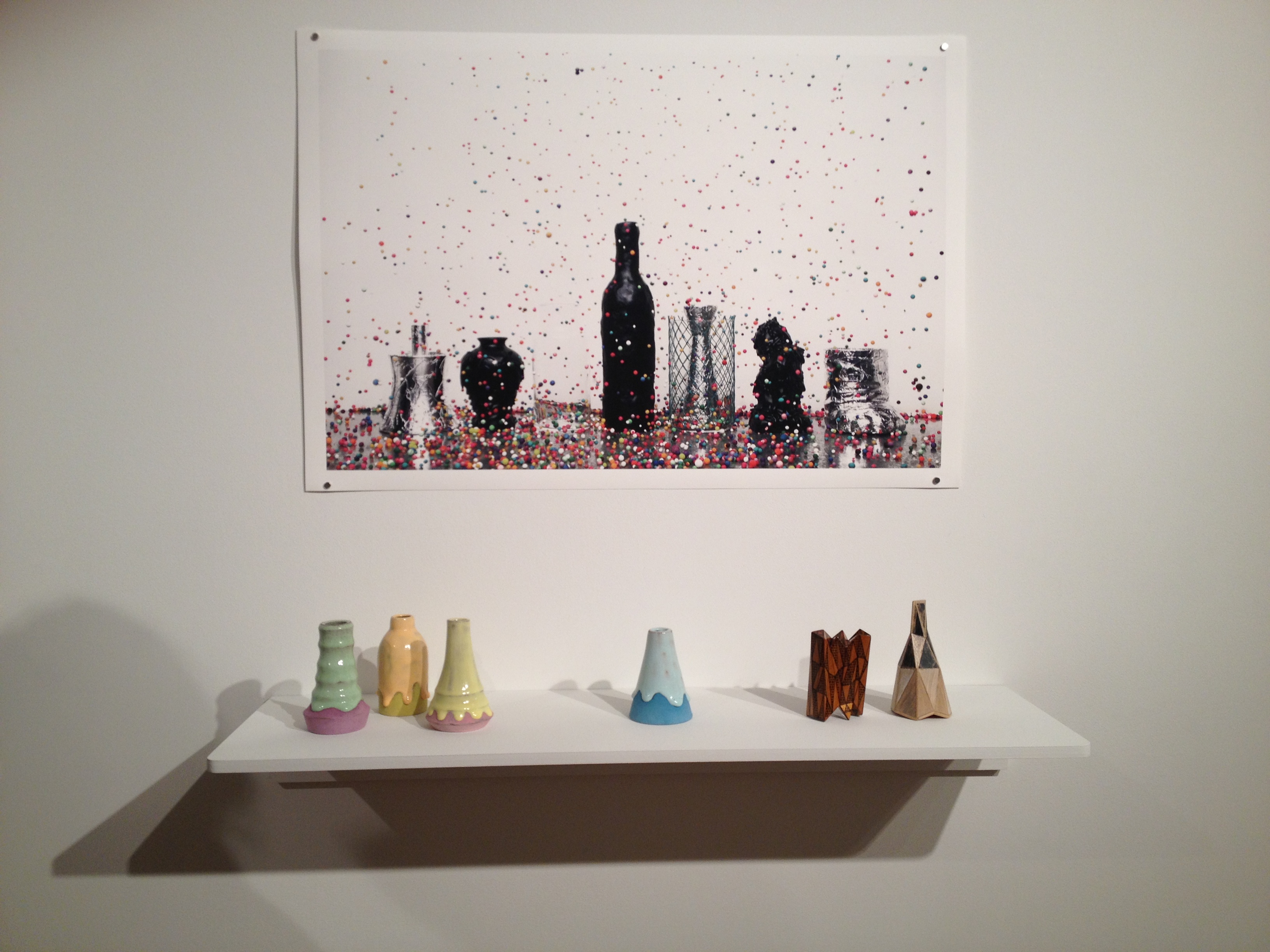 Brian Giniewski, Flux and Flurry, digital print on archival paper, 20″x30″. Brian Giniewski, Garnish, 2013, ceramic. Installation view. Image courtesy of Erin Dziedzic