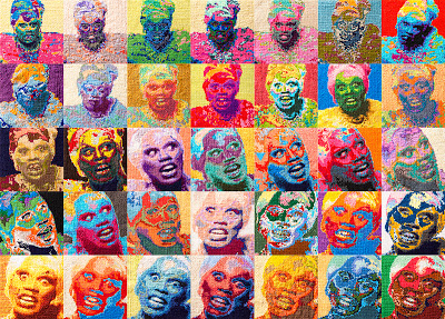 Aubrey Longley-Cook, RuPaul Cross Stitch Animation Workshop: Frames 1-35 (Front View), 2013, thread on fabric. Image courtesy the artist and Barbara Archer Gallery.